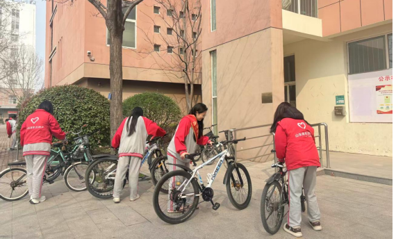 理论学习之外,我校学子走出教室,以实际行动践行雷锋精神,开展全方位校园志愿服务活动。在校园主干道与宿舍楼周边,志愿者们化身“秩序守护者”,将摆放杂乱的自行车逐一规整,从车身擦拭到车位归位,每一个细节都彰显着细致与耐心,让原本凌乱的停车区域变得井然有序。