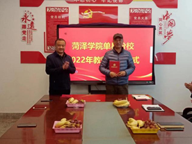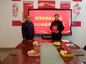 石荣欣为荣休教师颁发了光荣退休证书。