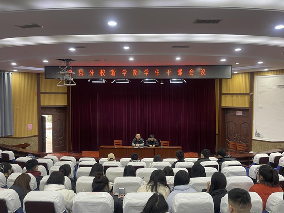 2月11日下午3:30,学工办在阶梯教室召开全体学生干部会议。会上,辅导员首先进一步明确了各部职责、细化了各部分工,严格工作纪律;其次,在纪律检查、卫生检查、晚就寝检查、就餐检查等方面提出具体要求,要求全体学生干部以身作则、砥砺前行。