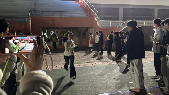 随着发令哨声响起,参赛选手们佩戴荧光手环与头带,从起点有序出发。夜色中,五彩荧光随奔跑的脚步不断流动、汇聚形成一条璀璨的“荧光长龙”,打破了校园夜晚的宁静。选手们或结伴而行、相互鼓劲,或奋力冲刺、挑战自我,赛道上回荡着欢声笑语与加油呐喊。沿途的补给站工作人员及时为选手递上水和能量食品,志愿者们的热情指引与加油声,成为选手们前行的动力。不少路过的师生被现场氛围感染,纷纷驻足观看,为奔跑的学子们鼓掌喝彩。